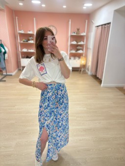 Jupe longue Fleuris Rose Taille élastique Fente sur le...